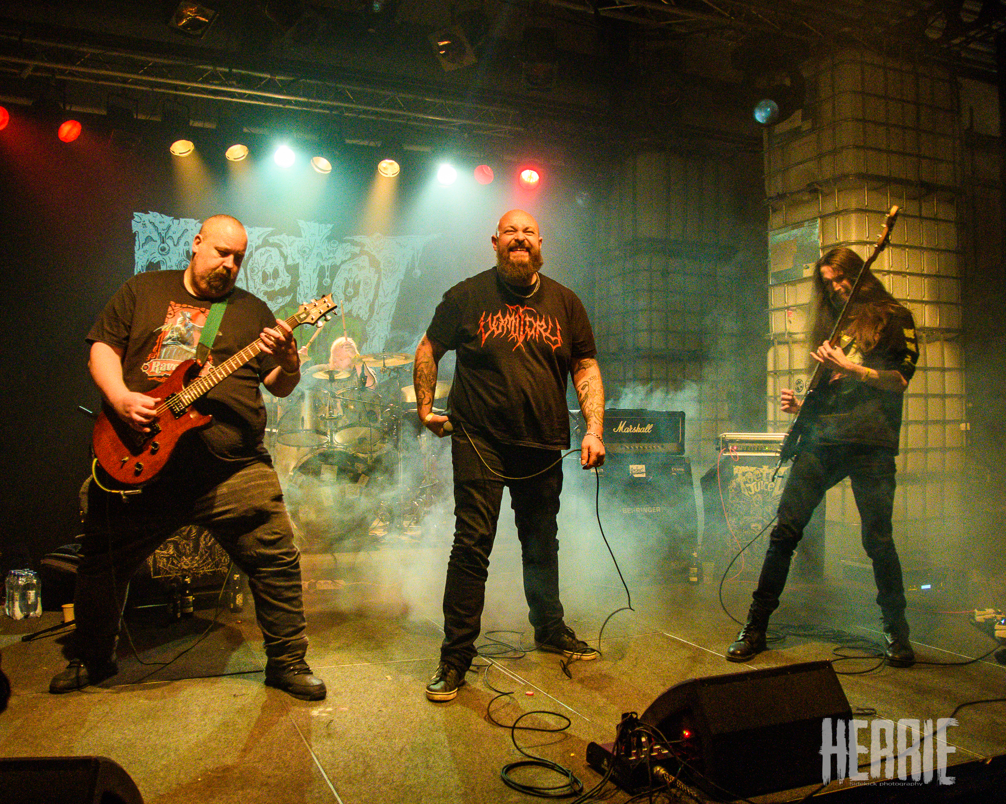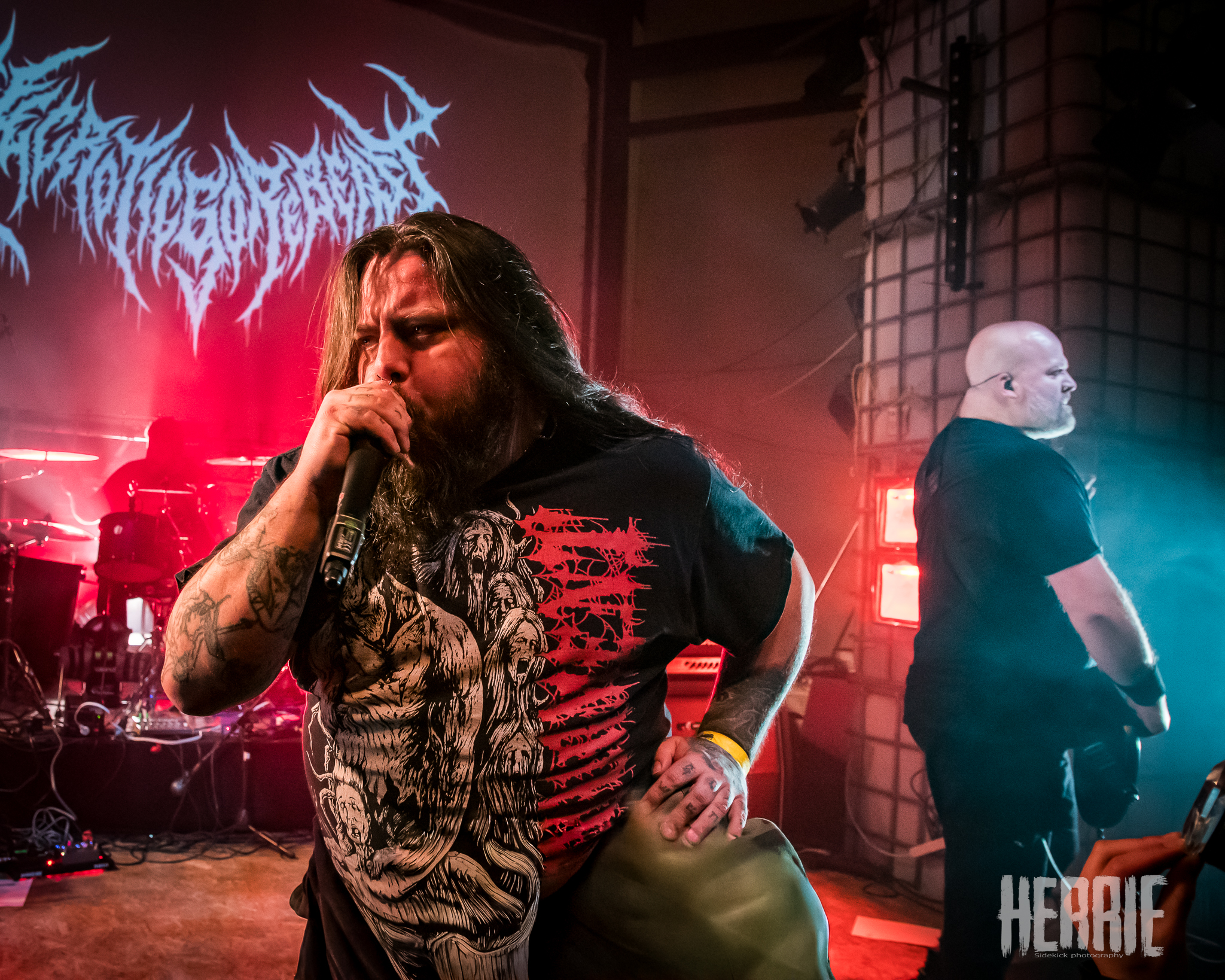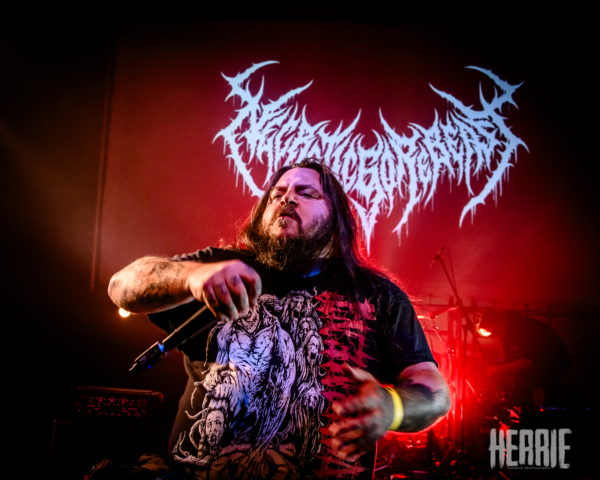 Necrotic Gorebeast uit Canada, doet zijn eerste tour hier en de mannen hebben het erg naar hun zin. Deze death formatie heeft ballen en speelt fucking strak. Met recht dat het publiek dan ook lekker los gaat. Het is een energieke podium verschijning. Drummer Jean-Philippe Bouchard brengt een heerlijk stukje blasten, en gitarist Michael Chamberland vult dit perfect aan. Zanger Jonathan Mayer is een echt podiumbeest. Dit werkt en is fucking episch. Zeer tof optreden met de juiste vibe die overslaat op de Hal. Lekkere bak herrie en volop rammen geblazen, met strakke tempowisselingen onder leiding van een uitstekende drummer. Fotografen gaan tot het uiterste om dit vast te leggen en klimmen zelfs boven de omheining uit. Deze moet je meemaken! Dit is toch wel een hoogtepuntje van deze Herrie zaterdag. De hele tent wordt vervolgens wel gerocknrolld. Door de inzet van Rick Astley na de show, maar de sfeer is lyrisch en iedereen danst en zingt mee.