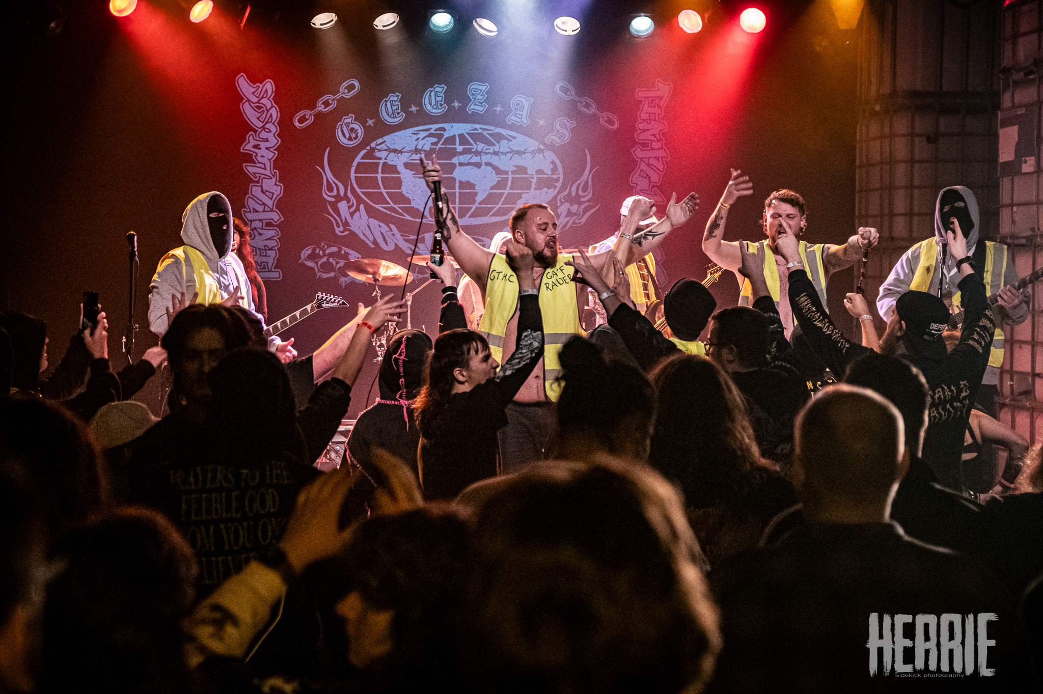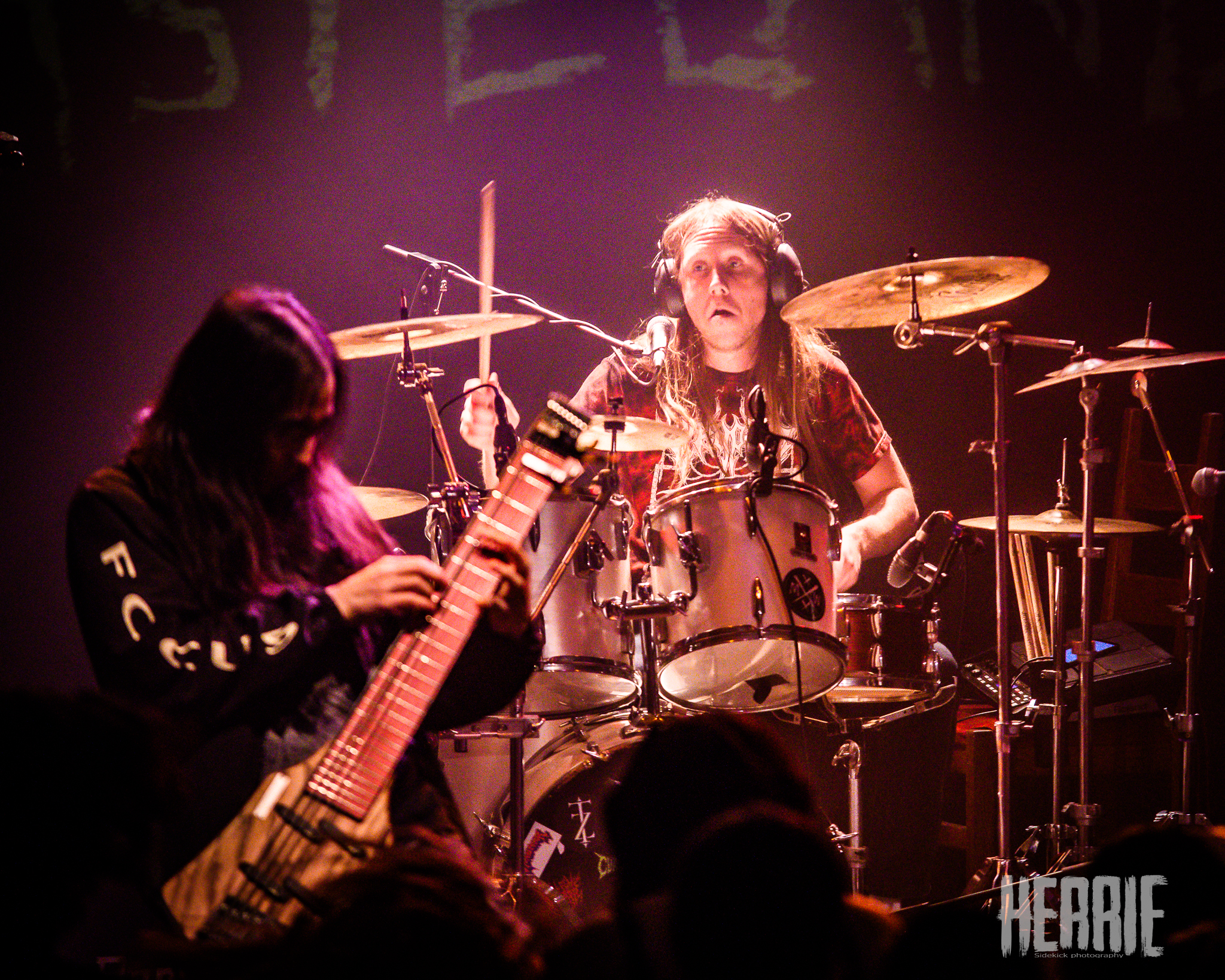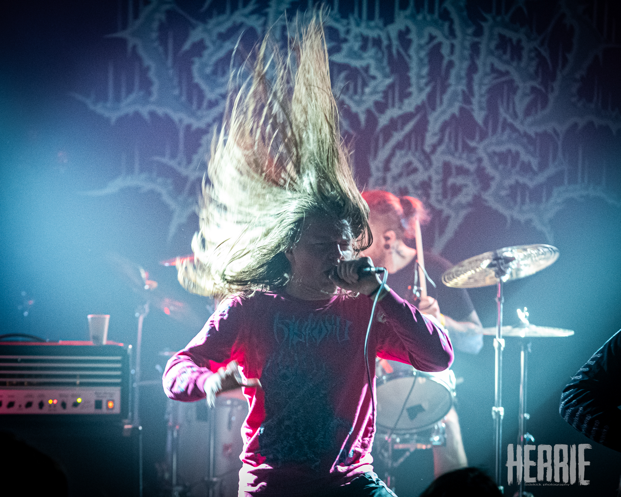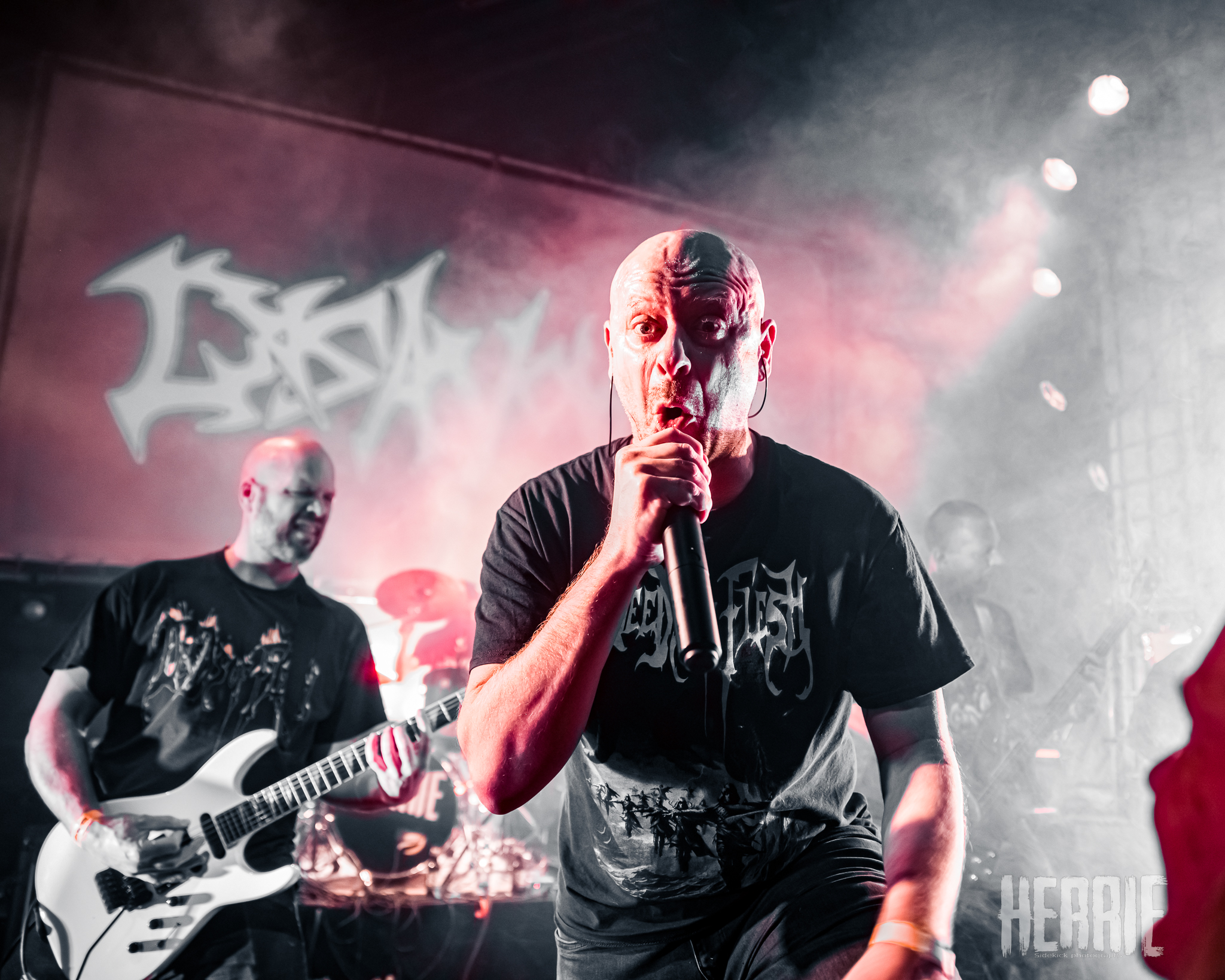 Necrotic Gorebeast uit Canada, doet zijn eerste tour hier en de mannen hebben het erg naar hun zin. Deze death formatie heeft ballen en speelt fucking strak. Met recht dat het publiek dan ook lekker los gaat. Het is een energieke podium verschijning. Drummer Jean-Philippe Bouchard brengt een heerlijk stukje blasten, en gitarist Michael Chamberland vult dit perfect aan. Zanger Jonathan Mayer is een echt podiumbeest. Dit werkt en is fucking episch. Zeer tof optreden met de juiste vibe die overslaat op de Hal. Lekkere bak herrie en volop rammen geblazen, met strakke tempowisselingen onder leiding van een uitstekende drummer. Fotografen gaan tot het uiterste om dit vast te leggen en klimmen zelfs boven de omheining uit. Deze moet je meemaken! Dit is toch wel een hoogtepuntje van deze Herrie zaterdag. De hele tent wordt vervolgens wel gerocknrolld. Door de inzet van Rick Astley na de show, maar de sfeer is lyrisch en iedereen danst en zingt mee.