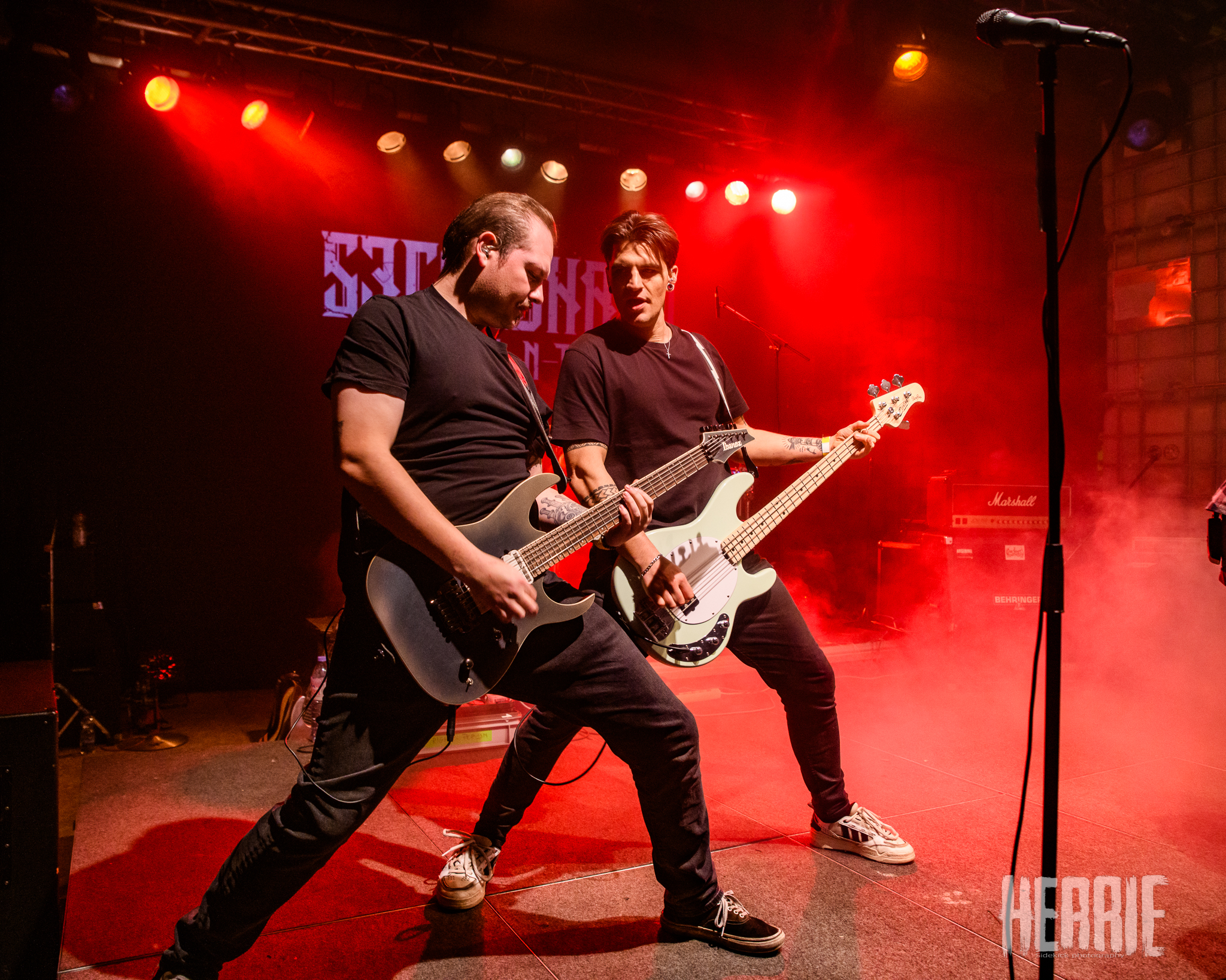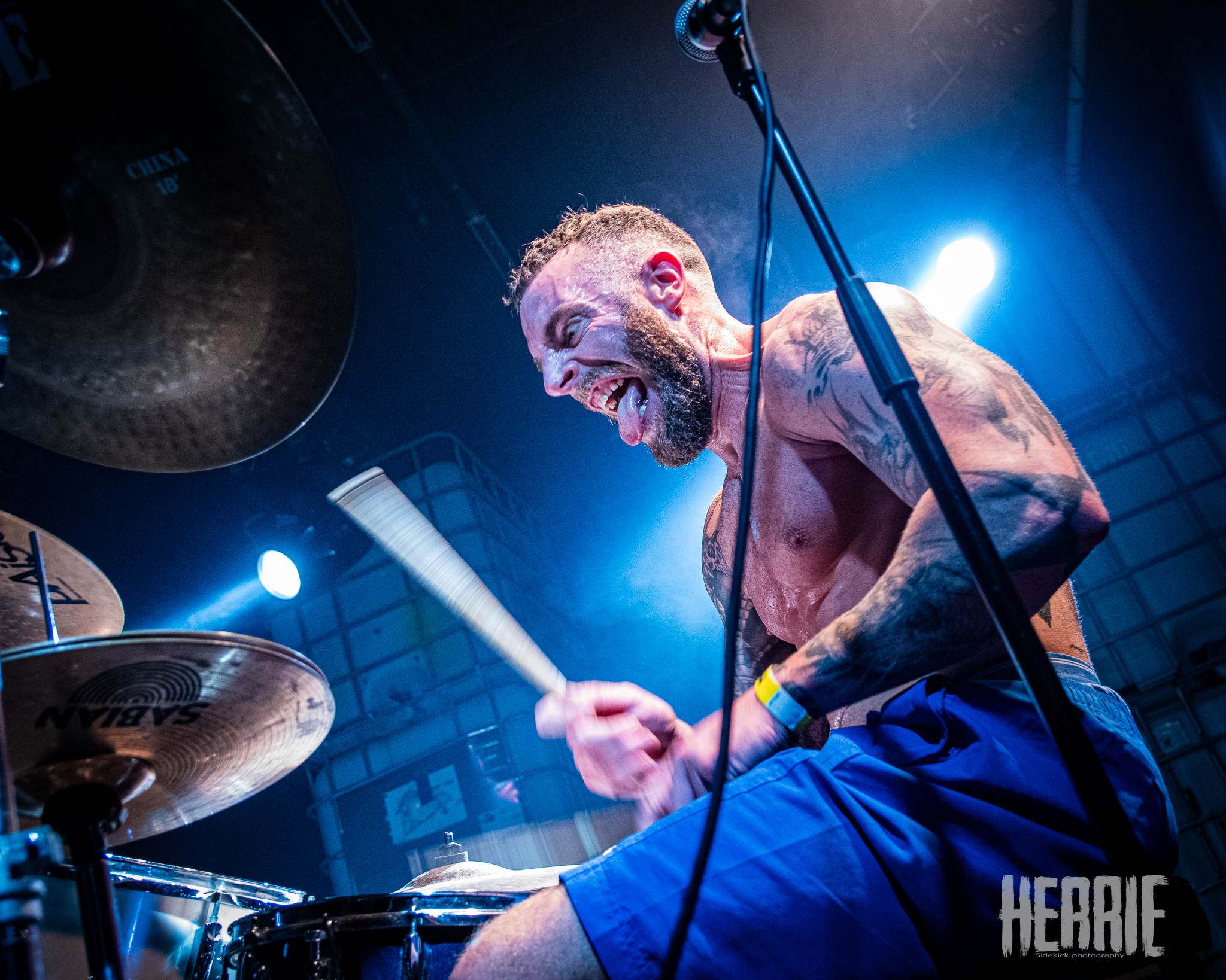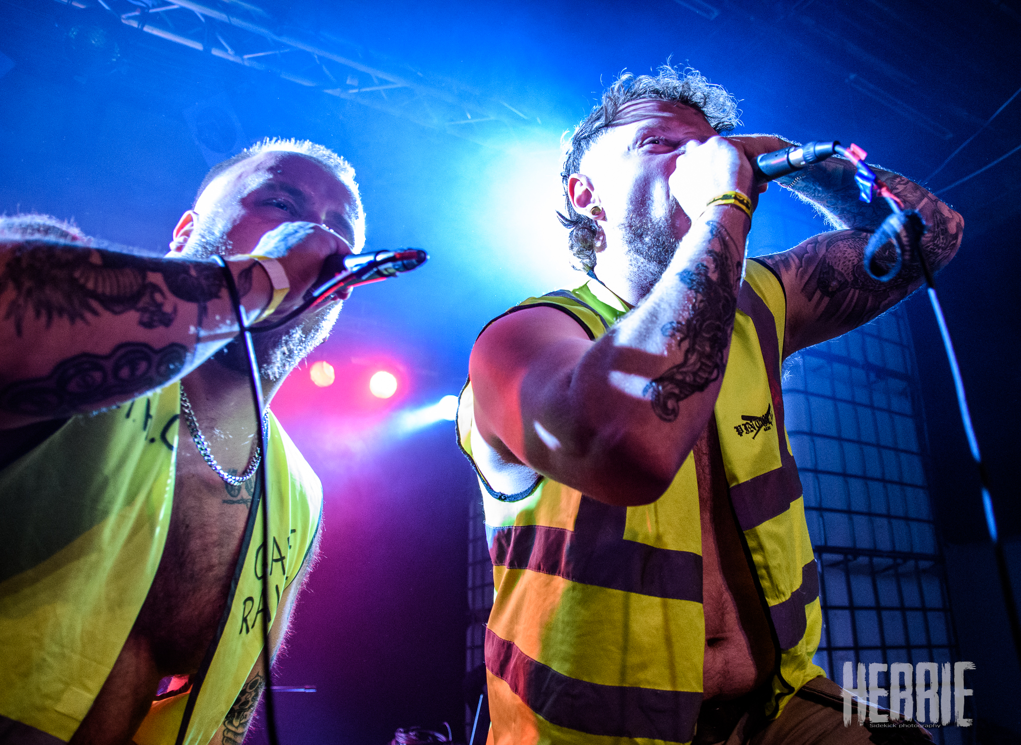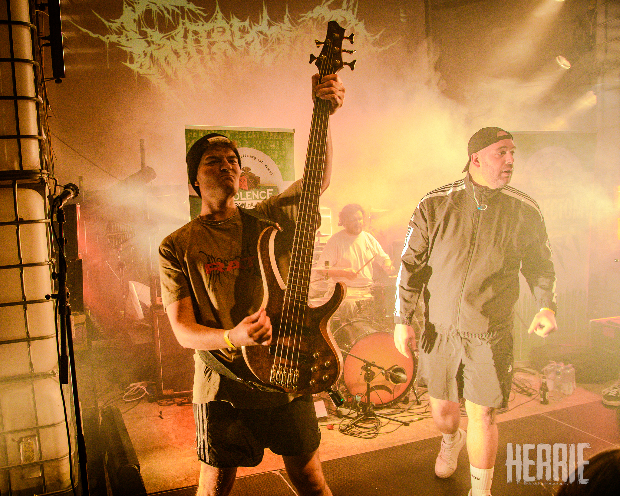 Secondhand Saints uit België zijn een podium vullend gezelschap met maar liefst 2 frontmannen. Voor de afwisseling een band met ook een clean vocal. Metalcore is echt wel iets heel anders vergeleken met de eerder gebrachte herrie, maar dat is ook de charme van dit festival. De band oogt wat netjes, en zet ook een nette show neer. De wisselwerking tussen beide zangers Jelle en Laszlo is prima, zo ook de diversiteit binnen de nummers. Echter voor het Herrie publiek is dit allicht wat soft. De mean vocals overtuigen naast de energieke bassist Pepijn, dusdanig dat er toch een bescheiden pitje ontstaat. In de geluidsopname die meeloopt schuilt een flinke bas, wat naast een toevoeging in het bombastisch effect ook zorgt dat je ingewanden een behoorlijke opdonder krijgen. Het publiek mag het voelen (letterlijk). De bandleden genieten zichtbaar, en ondanks dat dit een andere toevoeging binnen het programma is, trekt de bouwplaats aardig vol. Terecht ook want de wisselwerking en de dynamiek tussen de bandleden is best indrukwekkend. Leuke gevarieerde set die bewijst dat er niks mis is met metalcore, want ook hier wordt volop genoten. Vermakelijke dansbare beats zorgen voor verbroedering voor het podium en een links, rechts springsessie die passend is bij een optreden van de snollebollekes. De sfeer onder het publiek neemt in ieder geval toe, naar mate de set vordert. De pit raakt echt op dreef tijdens de cover van NENA & Kim Wilde ‘Anyplace Anywhere Anytime’. We kunnen lang lullen, maar het is al met al een leuk feestje.