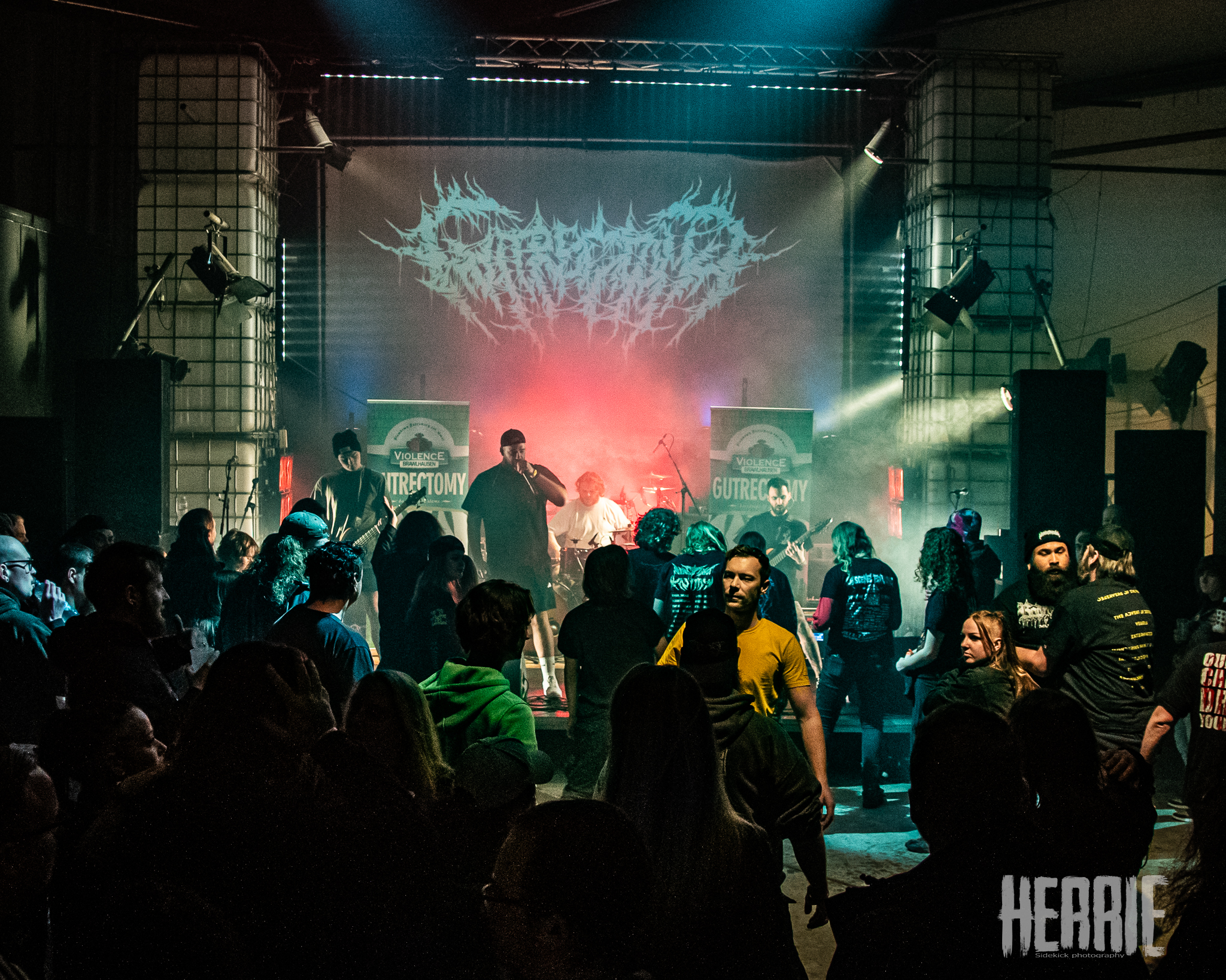 In de hal begint de ninja pit al voordat Gutrectomy de eerste noten aanslaat. Deze Duitse formatie is duidelijk in trek. Zeer wisselende tempo’s en de vocalen (pig squeels, grunts) van zanger Dennis Schuler zetten de sfeer. Deze bak herrie in de vorm van brutal deathcore, weet in ieder geval de Hal goed te vullen, ook al is het zeker niet het meest constante optreden. Maar de sfeerbeleving en het enthousiasme binnen deze agressieve geluidstsunami zijn in ieder geval aanwezig. Gabberbeats in de samples, zorgen voor tempo, waarna ook de versnelling op de gitaren en bas plaatsvindt. Er gebeurt van alles op muzikaal gebied, zolang het maar herrie is, en daarmee past Gutrectomy prima binnen het thema van dit festival.