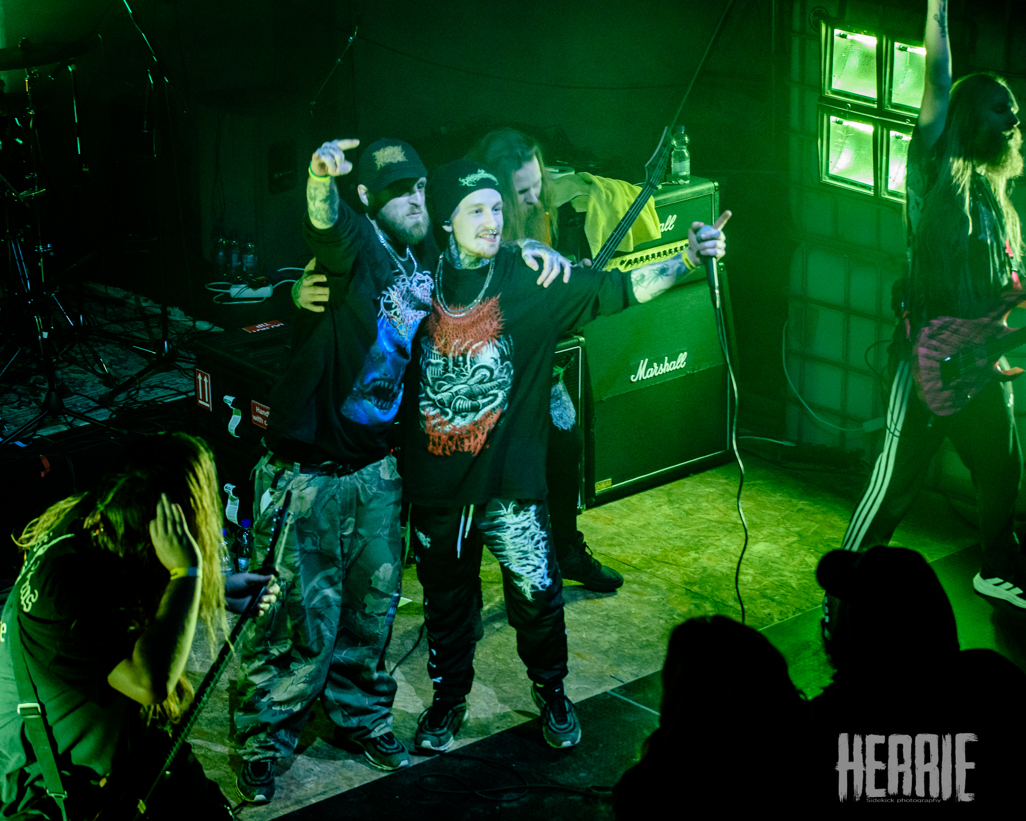 Gutteral Slug heeft de eer om de Hal af te sluiten. Rammende Slam/ brutal death metal/ metalcore uit Denemarken. Dit beloofd wat! De heren imponeren met tering strak geluid, zo’n beetje het beste van het hele weekend. Frontman Alexander Kristensen overtuigt met zeer diverse grunts. De groovende riffs en baslijnen komen goed door. Het is een energiek geheel, onder leiding van toffe blastende drums van drummer Lasse Kristensen. Een afsluiter om van te smullen en dat gebeurt dan ook hier op Herrie. Zeer overtuigend en een harde bak herrie. Fucking en vet en muzikaal wel de show van de dag, zo niet het weekend. Gutteral Slug brengt Herrie in hogere sferen.